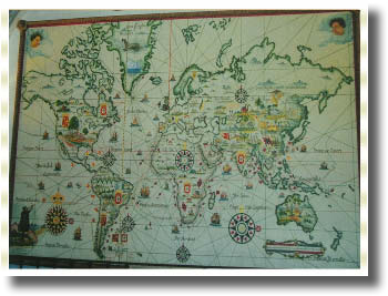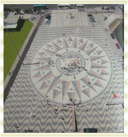 พื้นลานเป็นภาพแผนที่เดินเรือโบราณของชาวโปรตุเกส