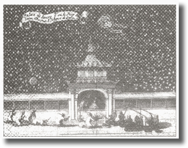 ภาพวาดสีน้ำที่คุณพ่อปูโช (Pouchot) คณะเยสุอิต มอบให้หอสมุดแห่งชาติฝรั่งเศส เมื่อ ค.ศ.1762/พ.ศ.2305