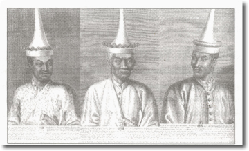 (จากซ้าย) ออกพระวิสูตรสุนทร หรือโกษาปาน ออกหลวงกัลยาราชไมตรี และออกขุนศรีวิสารวาจา