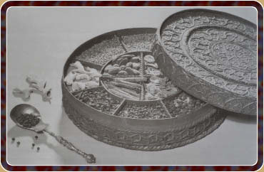 ตลับโบราณบรรจุตัวอย่างสินค้าเครื่องเทศชนิดต่างๆ อายุราวคริสต์ศตวรรษที่ ๑๖ (ภาพจาก