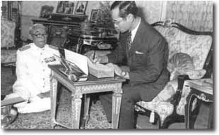 วันที่ ๖ ตุลาคม พ.ศ. ๒๕๑๙ ลูกเสือชาวบ้านและกลุ่มพลังต่างๆ ได้รวมตัวกันชุมนุมต่อต้านนักศึกษา และพยายามบุกเข้ามหาวิทยาลัยธรรมศาสตร์ เกิดการยิงต่อสู้กัน ตำรวจได้บุกเข้าไปในมหาวิทยาลัยธรรมศาสตร์เข้าเคลียร์พื้นที่ โดยมีกลุ่มกระทิงแดง ลูกเสือชาวบ้านและกลุ่มนวพลเข้าร่วมด้วย บ้างก็เข้าไปในมหาวิทยาลัยธรรมศาสตร์ บ้างก็รออยู่ข้างนอก เพื่อคอยทำร้ายผู้ที่หนีตำรวจออกมา เหตุการณ์เต็มไปด้วยความวุ่นวายสับสนมีนักศึกษาบาดเจ็บ และล้มตายเป็นจำนวนมาก คณะปฏิรูปการปกครองแผ่นดินนำโดย พลเรือเอก สงัด ชลออยู่ จึงทำการยึดอำนาจการปกครอง เพื่อจะได้เข้าไปแก้ไขสถานการณ์ดังกล่าวได้รวดเร็วขึ้น เพื่อความมั่นคงของชาติบ้านเมือง และได้เข้าเฝ้าฯ พระบาทสมเด็จพระเจ้าอยู่หัวฯ เพื่อกราบบังคมทูลรายงานสถานการณ์ของประเทศในขณะนั้นให้ทรงทราบสถานการณ์ ต่างๆ ก็เริ่มคลี่คลายลง พระบาทสมเด็จพระเจ้าอยู่หัวฯ ได้มีพระบรมราชโองการโปรดเกล้าฯ แต่งตั้งนายธานินทร์ กรัยวิเชียร เป็นนายกรัฐมนตรีเพื่อให้แก้ไขสถานการณ์ต่างๆ ให้กลับคืนสู่สภาวะปกติโดยเร็ว เหตุการณ์ความสับสนวุ่นวายต่างๆ จึงกลับคืนสู่สภาวะปกติอย่างรวดเร็วยุติการเสียเลือดเสียเนื้อ ทั้งนี้ ก็ด้วยเดชะพระบารมีของพระบาทสมเด็จพระเจ้าอยู่หัวฯ ผู้ทรงพระคุณอันประเสริฐ ทรงเป็นที่เคารพสักการะ และเป็นศูนย์รวมแห่งความศรัทธาและความจงรักภักดีของปวงชนชาวไทยอย่างมั่นคง ไม่มีวันเสื่อมคลาย พระมหากรุณาธิคุณได้ปกแผ่คุ้มเศียรเกล้าปวงชนชาวไทย ทรงขจัดปัดเป่าภัยจากวิกฤตการณ์ นำประเทศคืนสู่ความผาสุกสงบร่มเย็นอีกครั้งหนึ่ง