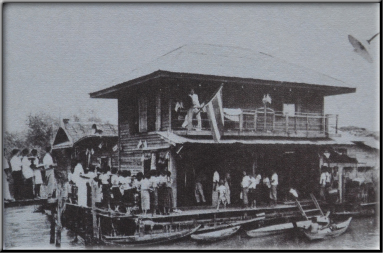 มีเรือสมุดหมูและเรือมาจอดเทียบหน้าเรือนรุปจากนางสาวผ่องศรี ธาราภูมิ