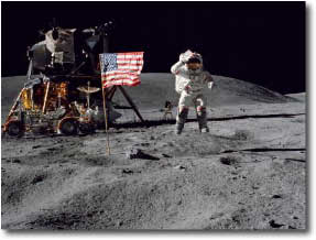 20 กรกฎาคม พ.ศ. 2512 ยานอวกาศ อพอลโล 11 (Apoll XI) ขององค์การนาซา (NAZA) สหรัฐอเมริกา เป็นยานอวกาศลำแรกที่ลงจอดบนผิวของดวงจันทร์สำเร็จ อพอลโล 11 ถูกส่งขึ้นสู่ชั้นบรรยากาศโดยจรวดแซทเทิร์น 5 (Saturn V) ที่ฐานยิงจรวจที่แหลมเคเนดี มลรัฐฟลอริดา เมื่อวันที่ 16 กรกฎาคมปีเดียวกัน อีกสี่วันต่อมาก็สามารถยลงจอดบริเวณ "ทะเลแห่งความเงียบสงบ” (Mare Tranquilitatis) ได้สำเร็จ ลูกเรือประกอบด้วย นีล อาร์มสตรอง (Neil Alden Armstrong) ผู้บังคับการ, เอดวิน อัลดริน (Adwin Aldrin) และ ไมเคิล คอลลินส์ (Michael Collins) อาร์มสตรองเป็นมนุษย์คนแรกที่ลงมาประทับรอยเท้าบนดวงจันทร์ ตามมาด้วยอัลดริน ทั้งสองได้ติดตั้งเครื่องวัดแผ่นดินไหว กระจกเลเซอร์เครื่องวัด "ลมสุริยะ" และเก็บตัวอย่างหิน-ดิน 20.8 กิโลกรัม นำกลับโลก รวมเวลาอยู่บนดวงจันทร์ 21 ชั่วโมง 36 นาที ใช้เวลานับตั้งแต่ออกเดินทางจนกลับถึงโลก 195 ชั่วโมง 18 นาที 35 วินาที กลับถึงโลกในวันที่ 24 กรกฎาคม 2512 ยานอวกาศอพลอลโล 11 เป็นส่วนหนึ่งของ "โครงการอพอลโล” (Apollo Project) ซึ่งเกิดจากความปรารถนาของประธานาธิบดี จอห์น เอฟ. เคเนดี (John F. Kenedy) ที่ต้องการจะส่งมนุษย์ไปยังดวงจันทร์ให้สำเร็จ และกลับมายังโลกอย่างปลอดภัย หลายปีหลังจากโครงการนี้จบลง ได้มีผู้คนออกมาโต้แย้งว่า การเหยียบดวงจันทร์ครั้งนี้ของอาร์มสตรองเป็นเรื่องโกหก ภาพที่เห็นนั้นถ่ายทำขึ้นในสตูดิโอ โดยให้เหตุผลว่า ภาพที่ได้คมชัดมีคุณภาพดีเกินกว่าจะถ่ายในบรรยากาศขอดวงจันทร์ ธงชาติสหรัฐฯ โบกสะบัดทั้งๆ ที่บนดวงจันทร์ไม่มีลม และรอยเท้าของมนุษย์ในอวกาศไม่น่าจะเด่นชัดขนาดนั้น ฯลฯ แต่นาซาและนักวิทยาศาสตร์ต่างออกมายืนยันอีกครั้งและอธิบายว่าเป็นเพราะ บนดวงจันทร์ไม่มีบรรยากาศคอยกรองแสง แดดจึงจ้ากว่าทุกแห่งในโลก บังคับให้ต้องใช้รูรับแสงเล็กมาก และความเร็วชัตเตอร์สูงมาก เราจึงเห็นฟ้ามืดในภาพจากดวงจันทร์ทุกภาพ ส่วนเสาธงที่ปักอยู่บนดวงจันทร์มีราวสำหรับแขวนธงเพื่อไม่ให้ธงห้อยแฟบติดเสา แต่ทำราวแขวนให้สั้นกว่าผืนธงเล็กน้อย ธงจะได้ย่นนิดหน่อย ดูเหมือนกำลังโบกสะบัด และประเด็นเรื่องรอยเท้า แม้บรรยากาศบนดวงจันทร์จะแห้งสนิท แต่ฝุ่นบนดวงจันทร์ต่างจากฝุ่นบนโลก คือเป็นเม็ดฝุ่นละเอียดยิบที่ผิวหยาบและรูปทรงไม่สม่ำเสมอ เพราะผิวดวงจันทร์ถูกอุกกาบาตพุ่งชนนับครั้งไม่ถ้วน เมื่อเม็ดฝุ่นถูกเหยียบ ผิวหน้าของมันจะสานเกี่ยวติดกันทั้งแห้งๆ อย่างนั้น จึงคงรูปอยู่ได้ ฯลฯ