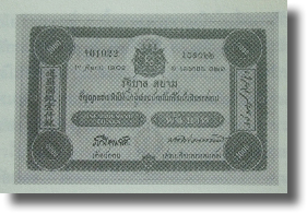 ต่อมาใน พ.ศ. ๒๔๓๓ กระทรวงพระคลังมหาสมบัติได้จัดพิมพ์ “เงินกระดาษหลวง” ขึ้น เพื่อใช้เป็นธนบัตร แต่มิได้นำออกใช้เพราะขาด ความพร้อม จนกระทั่ง พ.ศ. ๒๔๔๕ ทรงพระกรุณาโปรดเกล้าฯ ให้กระทรวงพระคลังมหาสมบัติจัดทำตั๋วสำคัญที่ใช้แทนเงินตรา ประกาศออกใช้เมื่อวันที่ ๗ กันยายน ธนบัตรไทยจึงถือกำเนิดขึ้นตั้งแต่บัดนั้นเป็นต้นมา.